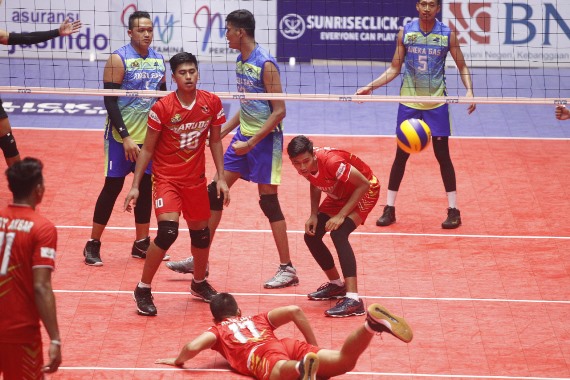 Jakarta Garuda memulai laga dengan langsung menyerang pertahanan lawan dan berhasil memimpin 8-5. Namun karena kesalahan berulang kali, mereka harus menyerahkan set pertama pada Sidoarjo Aneka Gas Industri dengan 21-25. Memasuki set kedua Mahendra Rikha dan kawan-kawan dengan mudah mengamankan poin dari lawan 25-20.