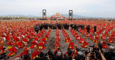 Ribuan wisatawan nusantara dan mancanegara rela berdesakan dan berpanas-panasan demi bisa menyaksikan pementasan kolosal yang diikuti 1.248 penari itu.
