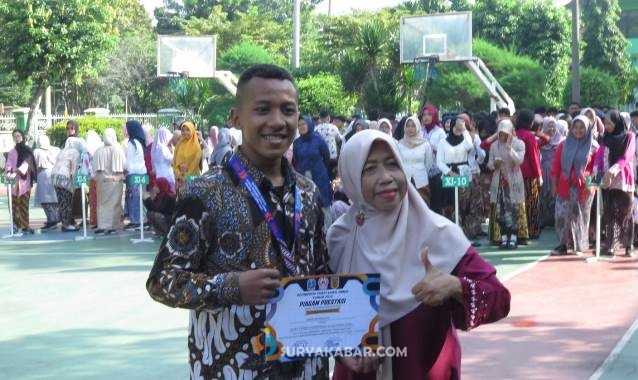 Medali dan piagam tersebut secara simbolis diserahkan pihak sekolah usai Upacara Peringatan Hari Kartini di halaman depan SMAN 1 Sidoarjo, Senin (21/4/2025).