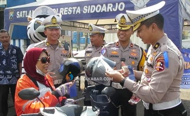 Salah satu pengendara yang terjaring razia simpatik ini adalah Caca, mahasiswi warga Perumahan Puri Indah, Kecamatan Sidoarjo.