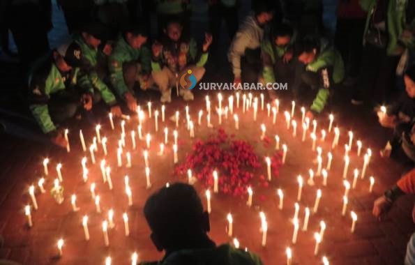Ratusan Pengemudi Ojol Sidoarjo Nyalakan Lilin dan Doa Bersama di Mapolresta Sidoarjo