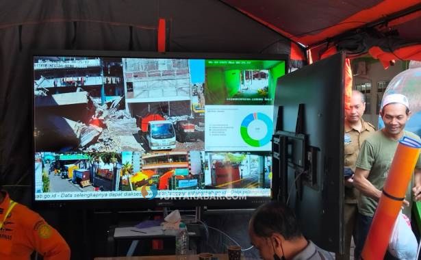 Proses evakuasi yang disiarkan Pemkab tersebut bisa disaksikan keluarga korban lewat monitor di Posko Basarnas.