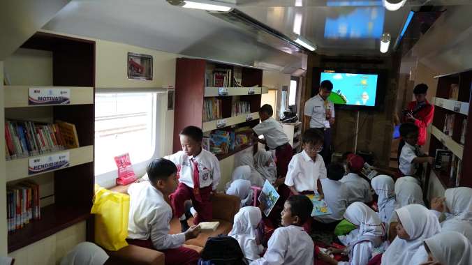 Anak-anak larut dalam kegembiraan membaca buku cerita, ensiklopedia, hingga materi pembelajaran digital. Stasiun yang biasanya identik dengan keberangkatan kereta pun berubah menjadi ruang belajar yang ceria dan menumbuhkan minat baca sejak dini.