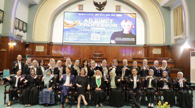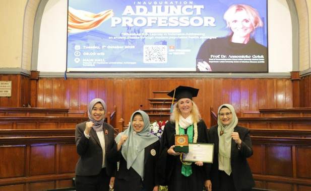 Salah satu kolaborasi yang dilakukan yakni dengan memberikan gelar profesor kehormatan atau Adjunct Professor Fakultas Kedokteran kepada Prof Dr Annemieke Geluk dari LUMC Belanda. Acara Adjunct Professor Inauguration 2025 digelar di Aula Utama FK Unair, Selasa (7/10/2025).