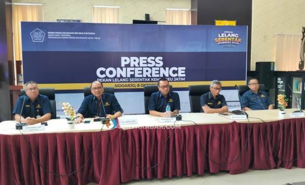 SIDOARJO, SURYAKABAR com – Kantor Wilayah Direktorat Jenderal Pajak (DJP) Jawa Timur dan Kantor Wilayah Direktorat Jenderal Bea dan Cukai Jawa Timur, bersama Kanwil Direktorat Jenderal Kekayaan Negara (DJKN) Jawa Timur menyelenggarakan Konferensi Pers kegiatan Pekan Lelang Serentak di Kantor Wilayah DJP Jawa Timur II, Rabu (8/10/2025).