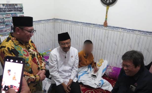 SIDOARJO, SURYAKABAR.com – Menteri Sosial Saifullah Yusuf, yang akrab disapa Gus Ipul, membesuk santri Syaiful Rozi Abdillah (13), di rumahnya, di Desa Sumokali, Kecamatan Candi, Sidoarjo, Sabtu (11/10/2025) pukul 10.15 WIB.