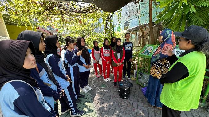 Puluhan Siswa SMKN 2 Buduran Praktik Pengolahan Sampah di Kampung Edukasi Sampah Sekardangan Sidoarjo