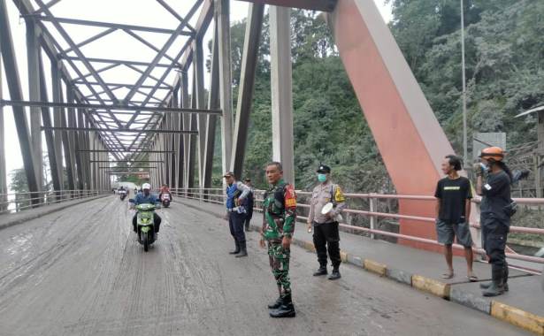 Aparat Satpol PP dan relawan yang bertugas di lokasi juga berperan aktif memberikan arahan langsung, melakukan pengaturan arus lalu lintas, dan membantu pembersihan material vulkanik.