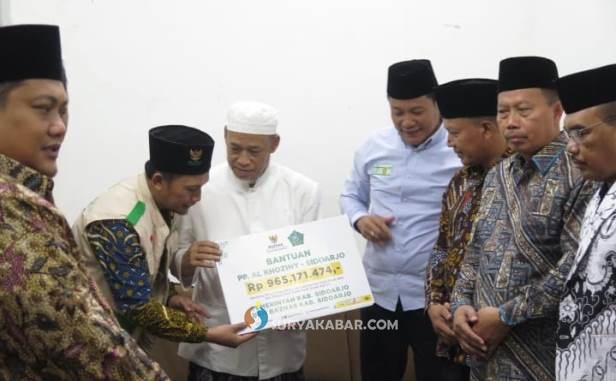 Donasi dari Badan Amil Zakat Nasional (BAZNAS) Sidoarjo berjumlah Rp 965.171.474 tersebut diserahkan Subandi yang diterima Pengasuh Ponpes Al Khoziny, KH Abdus Salam Mujib di kediamannya, Sabtu (22/11/2025) pagi.
