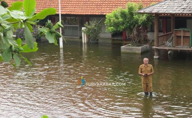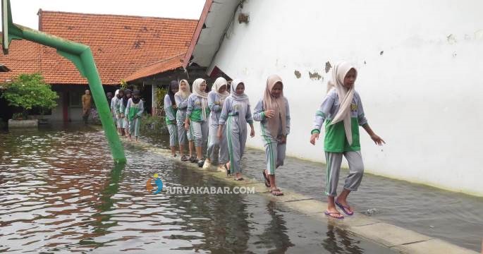 Hampir dua bulan, belasan ruang kelas hingga ruang guru terendam air dengan ketinggian yang terus berubah. Kondisi ini membuat aktivitas sekolah terganggu. Mulai proses belajar mengajar hingga agenda penting seperti pembagian rapor siswa yang terpaksa tertunda selama dua pekan.