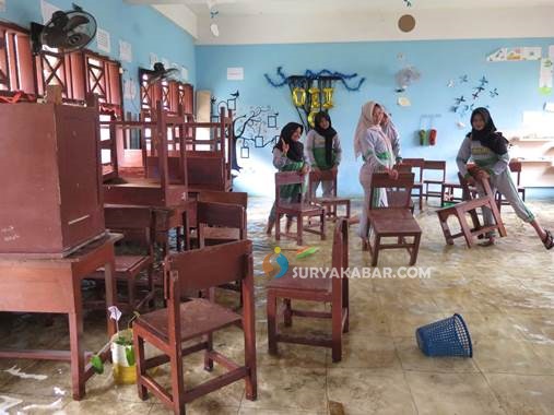 “Harusnya rapor dibagikan pertengahan Desember lalu, namun karena kondisi, rapor akan dibagikan Selasa besok. Untuk persiapan, beberapa ruang kelas untuk pengambilan rapor, hari ini dibersihkan,” terangnya.