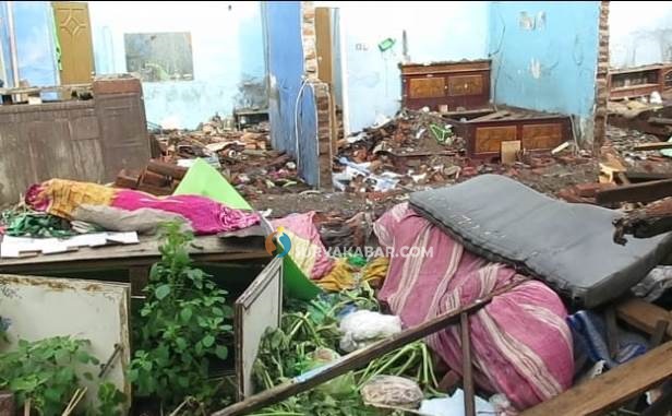 Ia menambahkan, hampir seluruh bagian atas rumahnya yang dibangun tahun 1994 ini ambruk dalam sekejap. “Beruntung tembok sisi Timur ambruknya ke lahan kosong di sebelahnya, tidak ke dalam,” ucapnya.