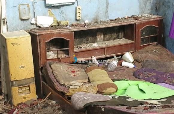 Akibat kejadian tersebut, hanya dinding antar ruang yang masih berdiri. Runtuhnya tembok sisi Timur membuat dua kamar tidur dan satu ruang tamu tampak terbuka.