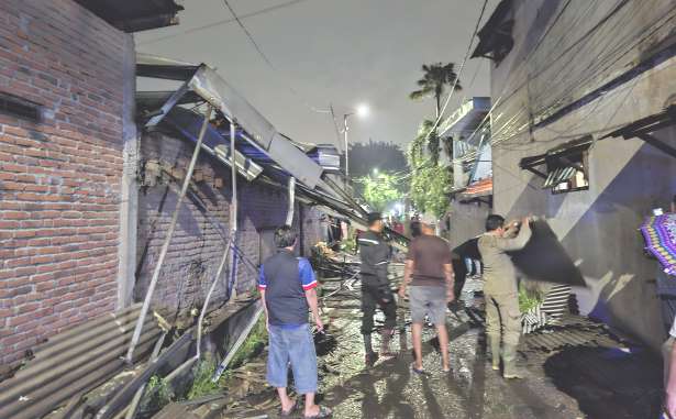 Peristiwa tersebut menyebabkan sebuah pohon tumbang serta atap rumah warga ambruk hingga menutup akses jalan lingkungan.