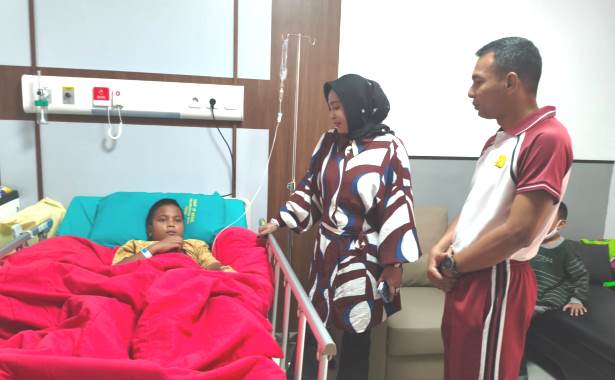 Dalam kesempatan tersebut, Mak Mimik menyempatkan diri menyapa pasien anak bernama Arif Salman Agustian Alfikiq (8), siswa SD Juwet Kononggo, Porong. Ia memberi motivasi agar Arif patuh menjalani pengobatan dan menjaga asupan makan.