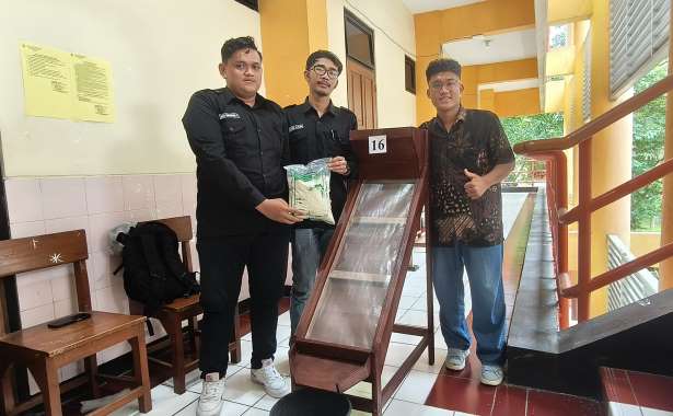 Selain kapasitas, faktor kesehatan pekerja juga menjadi perhatian. Kelompok Didan Suryadana Suwito, Faris Ardiansyah, dan Rivan Andika menciptakan alat ayakan beras otomatis.