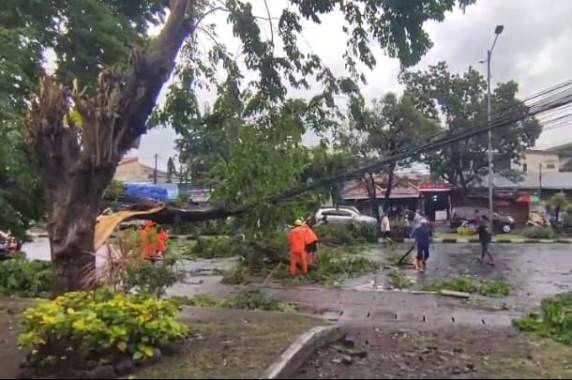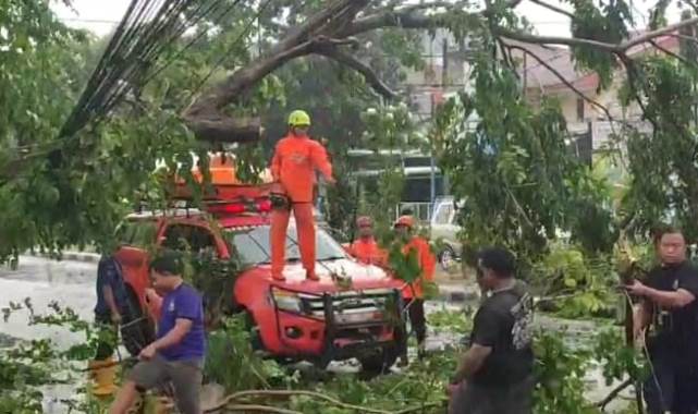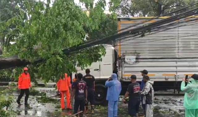 “Tadi anginnya kencang sekali. Beberapa motor berhenti mau pakai jas hujan, terus tiba-tiba terdengar suara keras ‘krek’. Pohonnya langsung roboh ke jalan. Untung tertahan kabel, kalau tidak pasti kena pengendara,” ujar Siti.