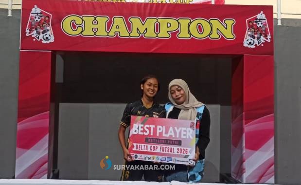 SIDOARJO, SURYAKABAR.com – Juara turnamen futsal Delta Cup 2026 kategori putri terbang ke Kota Mojokerto. Ini setelah di laga final, SMAN 2 Kota Mojokerto memetik kemenangan telak 8-0 atas SMK Antartika 2 Sidoarjo di GOR Sidoarjo, Jumat (13/2/2026) petang.