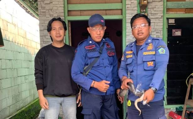 Personel Damkar Krian Evakuasi Ular Kobra yang Masuk Kamar Warga di Desa Kalimati, Kecamatan Tarik Sidoarjo